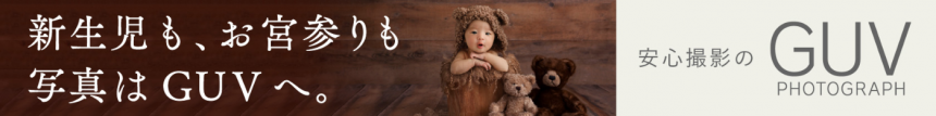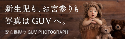 2019.08 Title GUV PHOTOGRAPH/新生児も、お宮参りも写真はGUVへ/ふーぽWebサイトバナー Client GUV PHOTOGRAPH Creative Director/Art Director/Editor 堀一心 Designer 小林光