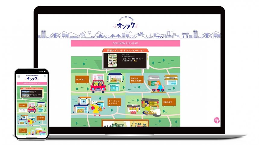 2020.09 Client 福井県まちづくりセンター Title オンラインで歩く福井の街「オンフク!」/Webサイト Creative Director/Editor 光眞坊まり子 Art Director 寺島正哲 Designer 寺島正哲/二木美恵 Illustrator 吉田夏菜